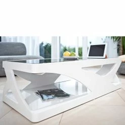 120×60 Design Wohnzimmertisch Mit Schwarzglas – Volmario