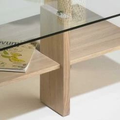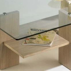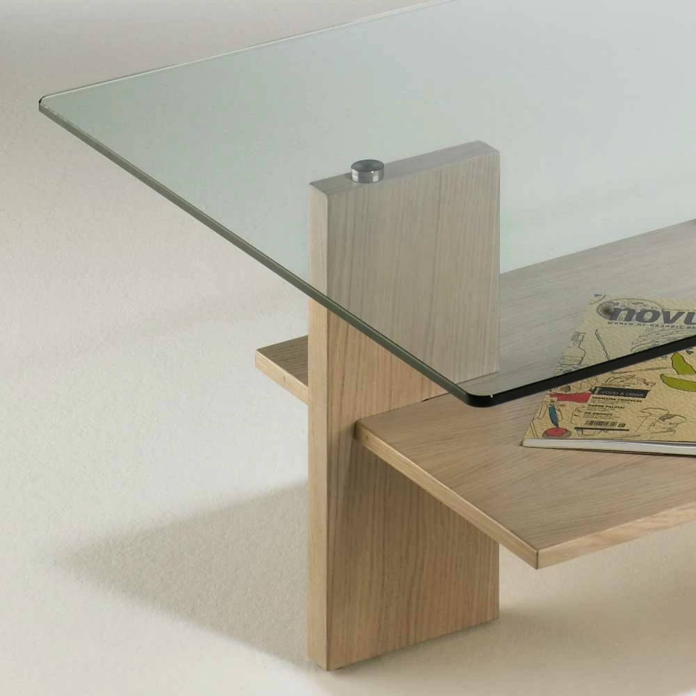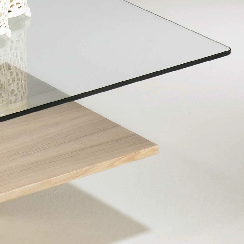 - Eleganter Couchtisch in Eiche gekälkt und Glas