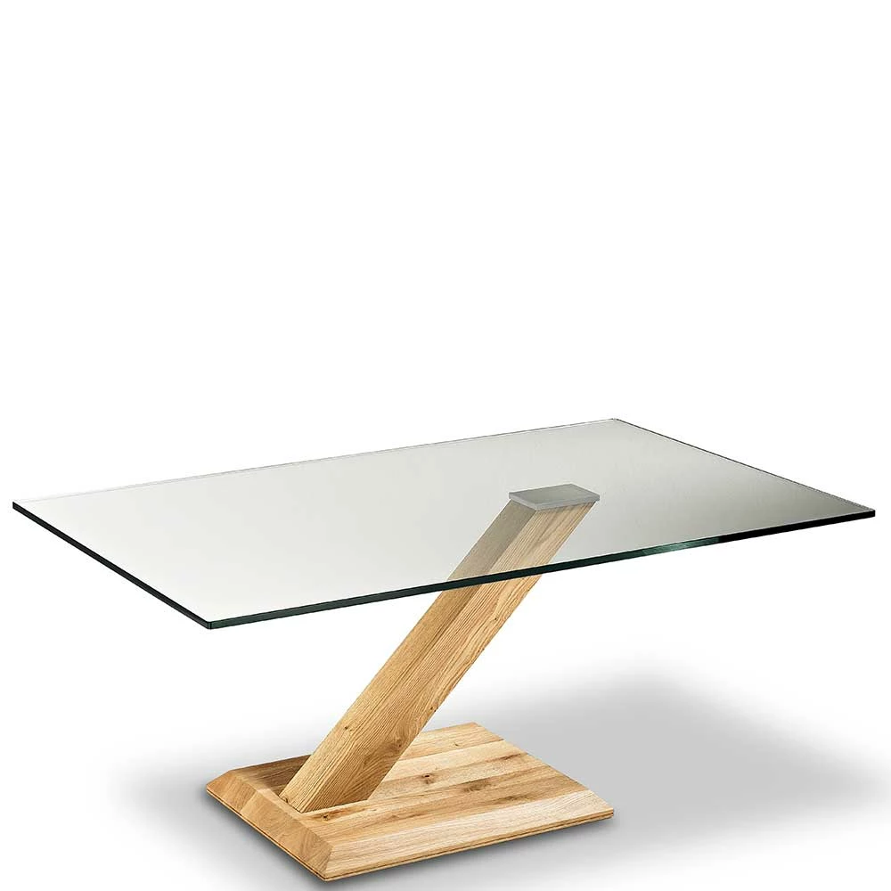 90×70 Couch Glastisch Mit Schrägem Säulengestell – Aduro