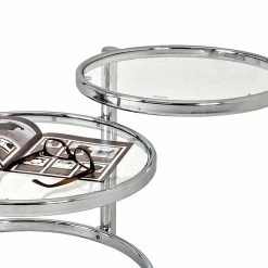 - Tisch mit durchsichtigen Ablagen und chromfarbenem Gestell