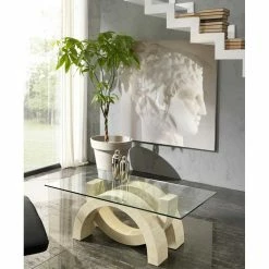 - Eleganter Couchtisch in Cremefarben und Transparent