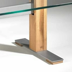 - Zwei eckige Säulen aus Massivholz Eiche, Verbindungsstück aus Flachstahl in Titansilberfarben lackiert