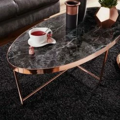 Ovaler Wohnzimmertisch In Dekor Marmor Schwarz – Casarius