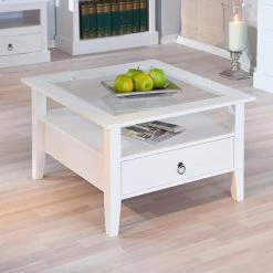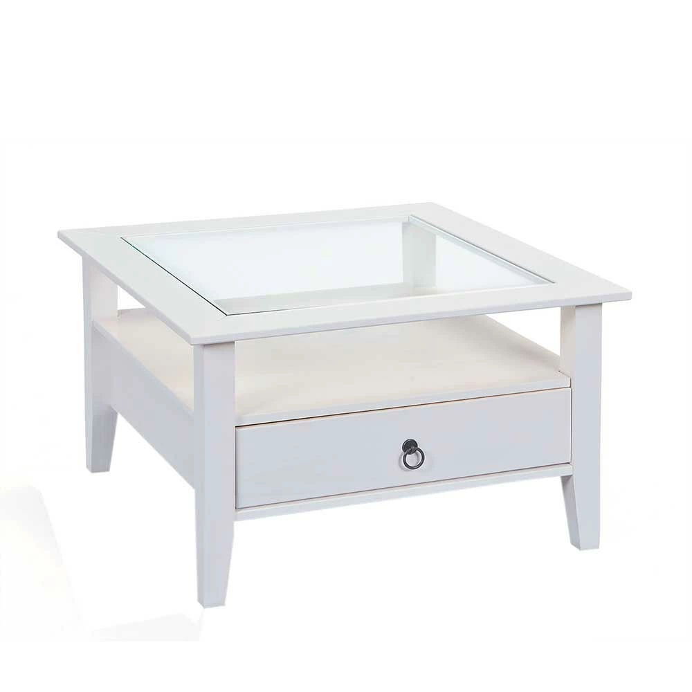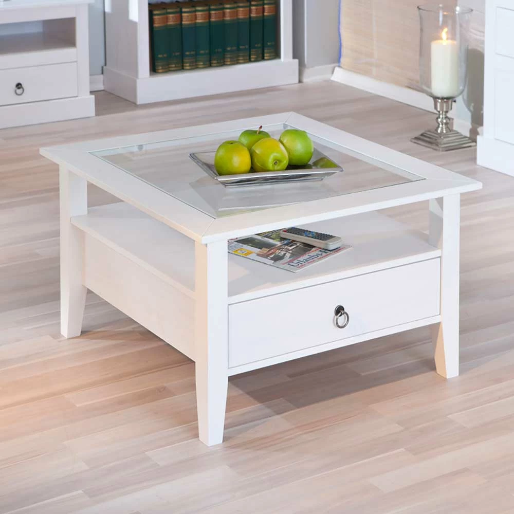 Quadrat 75×75 Landhaus Sofatisch Mit Glas – Rosanna