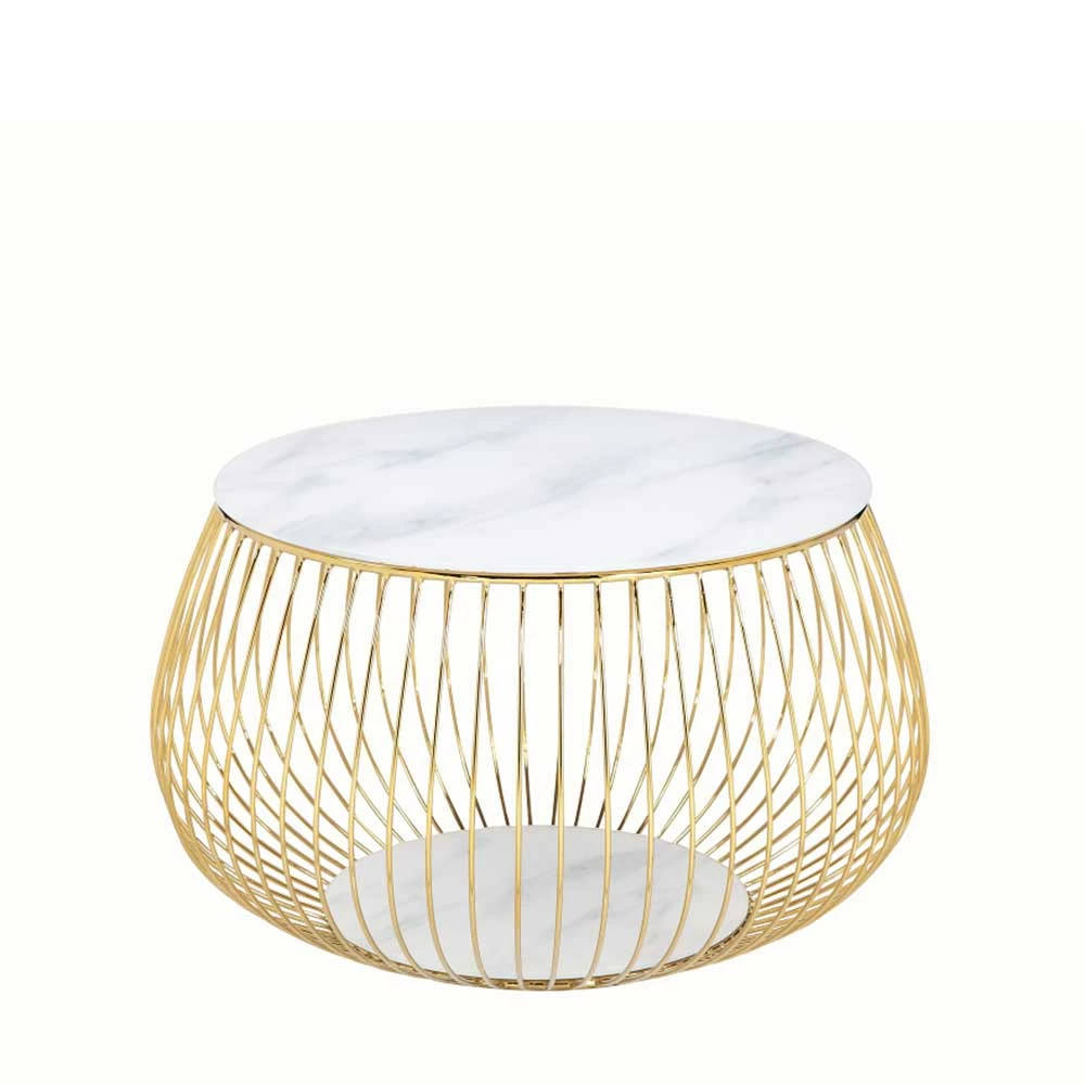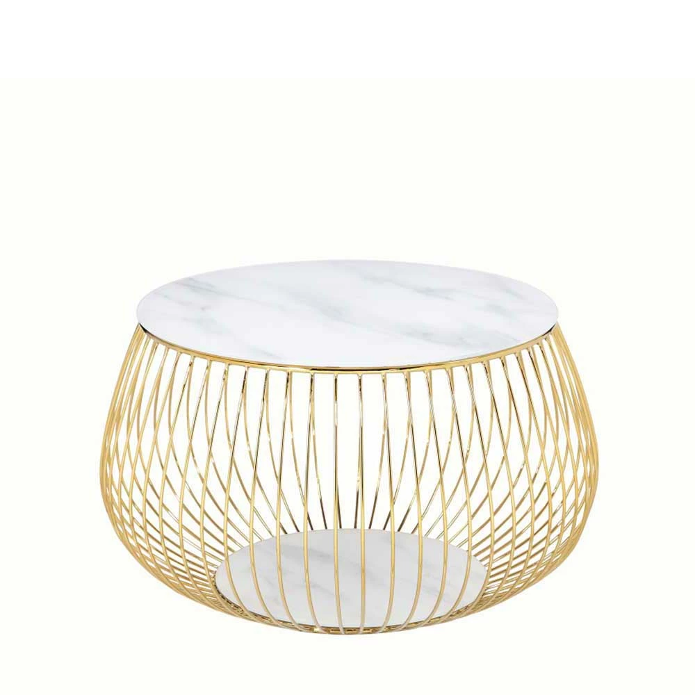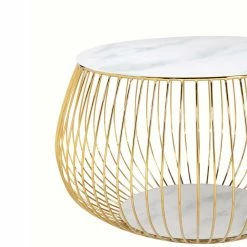 Runder Design-Couchtisch Mit Glasplatte Marmoroptik – Hayaton