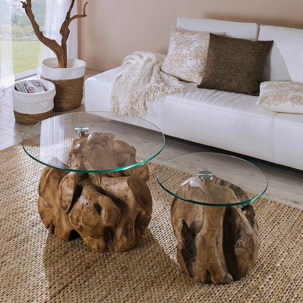 - Extravaganter Zweisatztisch in Teak Naturfarben