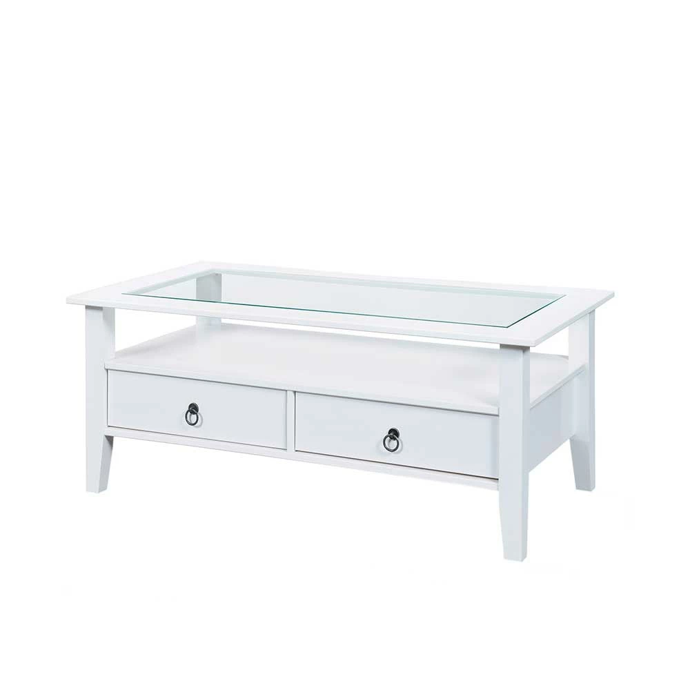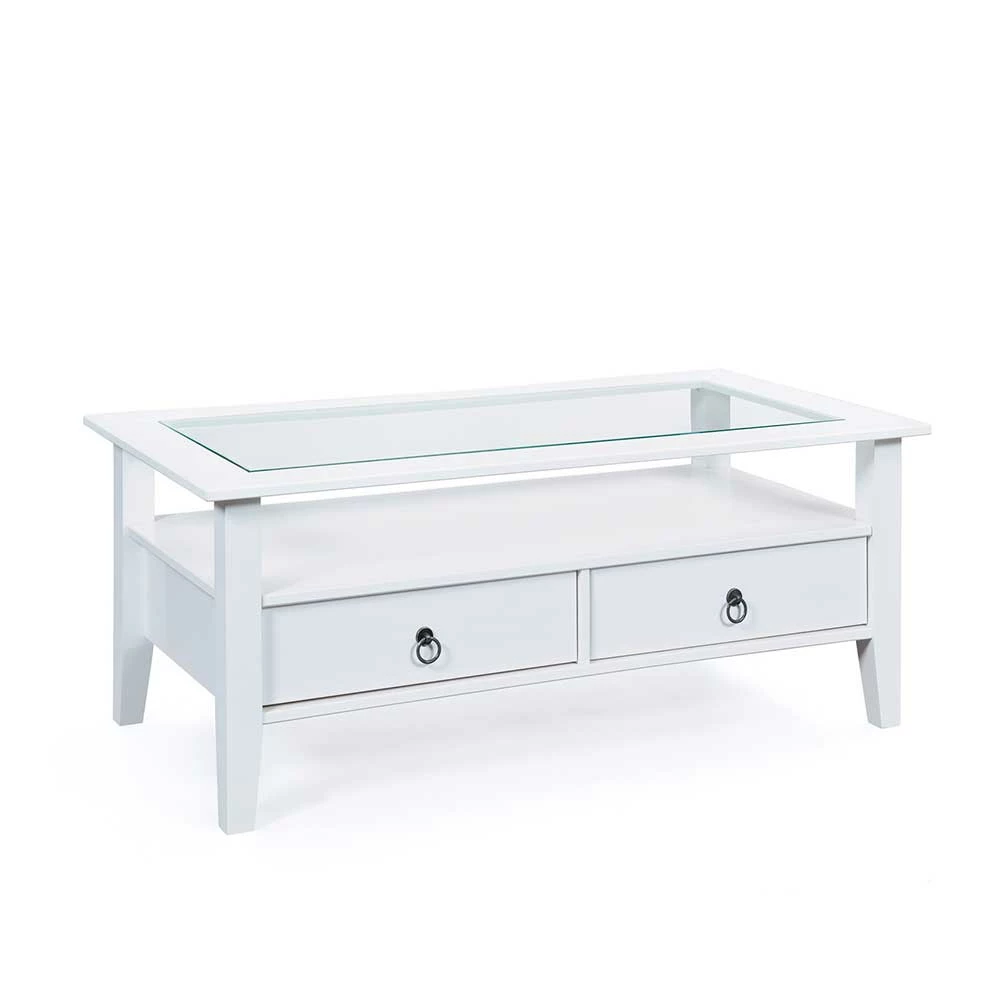 Weißer Landhaus Couchtisch Mit Glas Einsatz – Rosanna
