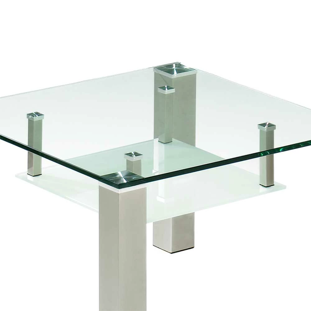 - Mit einer weiteren Ablage aus satiniertem Glas unter der Tischplatte (ca. 50×50 cm)